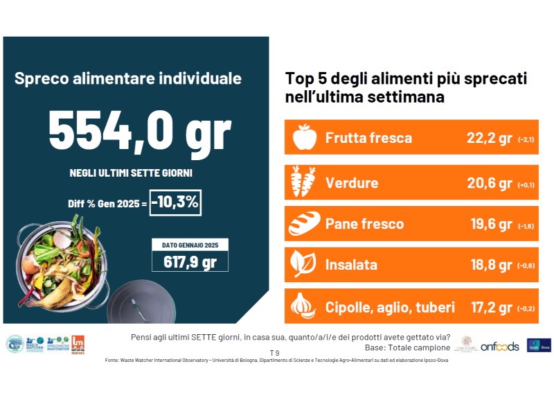 L'intelligenza naturale e generazionale è il filo rosso del report "Caso Italia 2026" dell'Osservatorio Waste Watcher International in vista del 5 febbraio. Nella data della Giornata nazionale di Prevenzione dello spreco alimentare, indetta per la 13° volta dalla campagna pubblica di sensibilizzazione Spreco Zero, l'impresa sociale fotografa il comportamento nel mese di gennaio 2026 insieme all'Università di Bologna e Last Minute Market su monitoraggio Ipsos - Doxa.