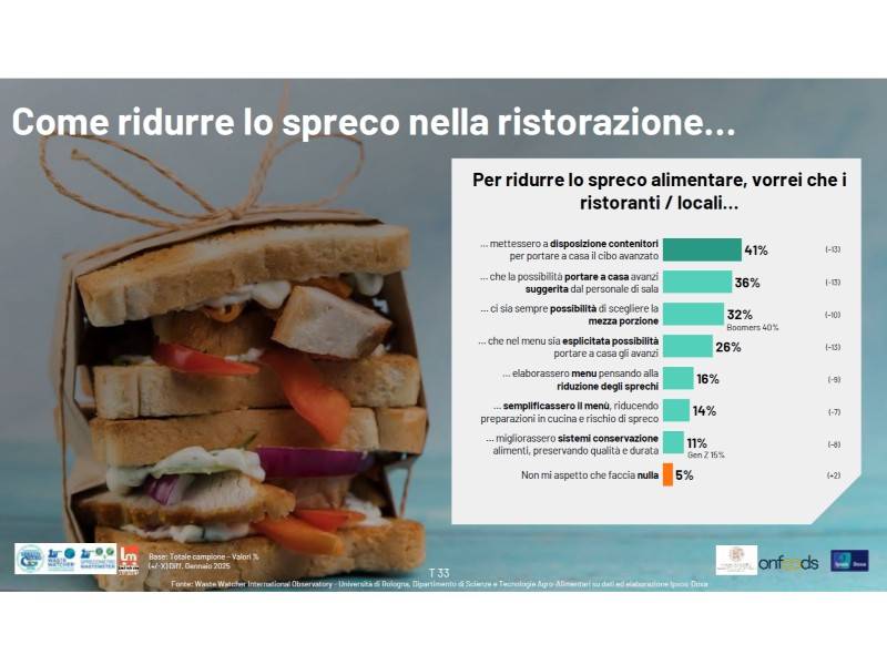 E nella ristorazione? Anche in questo settore l'Osservatorio Waste Watcher ha acceso un faro in sinergia con Confcommercio e Fipe: 8 italiani su 10 non sprecheranno il cibo al ristorante perché di regola lo consumano tutto, oppure porteranno a casa il cibo rimasto. Il 93% dei clienti, infatti, riceve dal cameriere il contenitore per portarsi a casa il cibo e non si vergogna più di farlo, sei volte su 10 la proposta di recuperare il cibo avanzato arriva direttamente dal ristoratore. Su questo tema, al Sigep di Rimini è stato presentato il Donometro: ogni giorno bar, pasticcerie e piccoli esercenti si trovano con alimenti invenduti ma ancora perfettamente consumabili. Trasformare questo surplus in risorsa sociale ed evitare che diventi rifiuto. La piattaforma consente di raccogliere dati preziosi su quantità e tipologie di beni donati, alimentando analisi puntuali sull’impatto ambientale e sociale. Il Donometro, quindi, trasforma ciò che altrimenti sarebbe sprecato in una risorsa preziosa per la comunità e l'attività del terzo settore. Ogni donazione sostiene chi ha più bisogno, riduce l’impatto ambientale e promuove una cultura della responsabilità condivisa. "Come sistema Confcommercio - ha dichiarato Lino Stoppani presidente di Fipe - avvertiamo la responsabilità di contribuire alla riduzione dello spreco alimentare sia per la parte che ci compete come settore di attività economica, sia per il ruolo che ogni giorno esercitiamo nei confronti di milioni di consumatori nella distribuzione e nella ristorazione. Il riconoscimento della cucina italiana da parte dell’Unesco può essere un potente acceleratore di consapevolezza perché evidenzia che il cibo non è una merce qualunque ma un condensato di valori culturali e sociali. In tale ambito ritengo fondamentale investire nell’educazione alimentare delle giovani generazioni, affinché i valori si traducano in comportamenti responsabili che mettano al centro il rifiuto dello spreco".