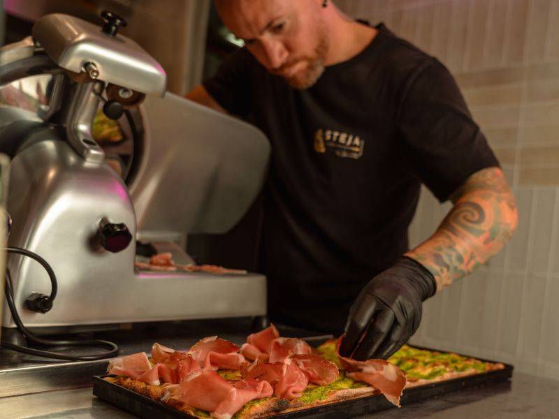Infine, per completare il pasto, ecco la pasticceria creata dalla pastry chef Sabrina Sforza (con ricette come il Bruciamisù, rivisitazione moderna del tiramisù con cuore di caffè, la Semi Sfera Rocher e proposte vegane a base di gelé di frutta e panna cotta alla liquirizia) e una drink list pensata dal barman Gabriele Lombardo che spazia dai classici ai cocktail signature (anche no-alcol). In particolare, gli amanti del gin possono scegliere dal carrello itinerante, che porta il gin tonic direttamente al tavolo, quale versione vogliono consumare. Una esperienza in più per animare l'aperitivo che include anche vini, birra e bocconcini fatti in casa (supplì, crocchette, taralli e, ovviamente, assaggi di pizza in teglia).