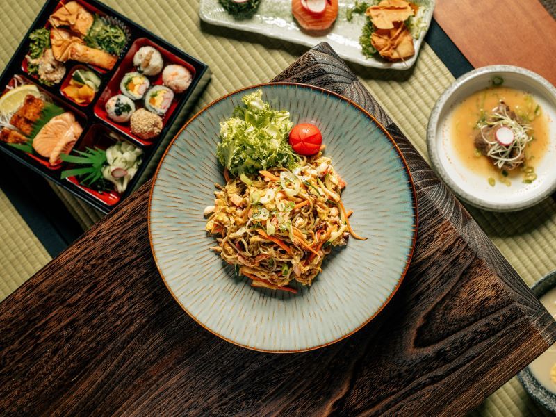 A 5 anni dal debutto, quindi, il nuovo format prevede un full immersion nelle atmosfere del Sol Levante: dalla cucina ai corsi di lingua e calligrafia, passando per le lezioni di pasticceria tradizionale con focus sui prodotti tipici. Soffermandoci sul menu, grande rilevanza viene data al momento del prenzo e della cena con un tripudio di ricette del Kensai (regione meridionale dell'arcipelago dove sorgono città come Osaka, Kyoto e Nara) e il sushi del maestro Aiuchi Takehiko. Selezione di dolci e the giapponese da bere secondo gli usi locali previsti per la cerimonia del the (naturalmente senza scarpe e inginocchiati sul tatami, fatto arrivare appositamente dal Giappone).