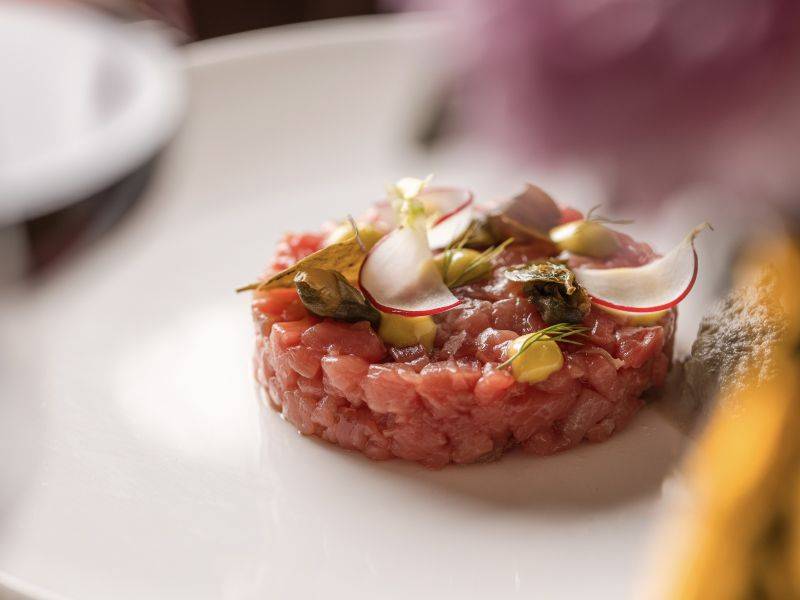 Il nome Claris nasce da un’ispirazione limpida: la luce come simbolo di vita e rinascita. Il ristorante si propone come esperienza luminosa, capace di unire storia, cultura e gusto in un’unica atmosfera. La filosofia della proposta culinaria del ristorante nasce da un costante legame con il territorio e la stagionalità, pur guardando avanti con tecnica e creatività. Nei piatti le radici si incontrano con l'innovazione, in un equilibrio che restituisce raffinatezza senza rigidità, memoria senza nostalgia. Ogni creazione diventa un viaggio sensoriale: dalle materie prime selezionate presso produttori locali alla leggerezza della presentazione, tutto concorre a comporre un racconto elegante, sostenibile e profondamente umano. I piatti? Tartare di vitello, pralinato di nocciole e dragoncello, Gnocchi di zucca, fungo shiitake Tarese del Valdarno (Presidio Slow Food), Radici, tuberi e tartufo nero, Cremoso al cioccolato bianco, olio Evo e tartufo nero e molto altro. Tutti da 30 euro in giù. In accompagnamento cocktail (con i grandi classici come il Bellini o lo Spritz a 16 euro) e vini (compresa un'ampia scelta di Champagne che arricchisce etichette da tutta Italia).