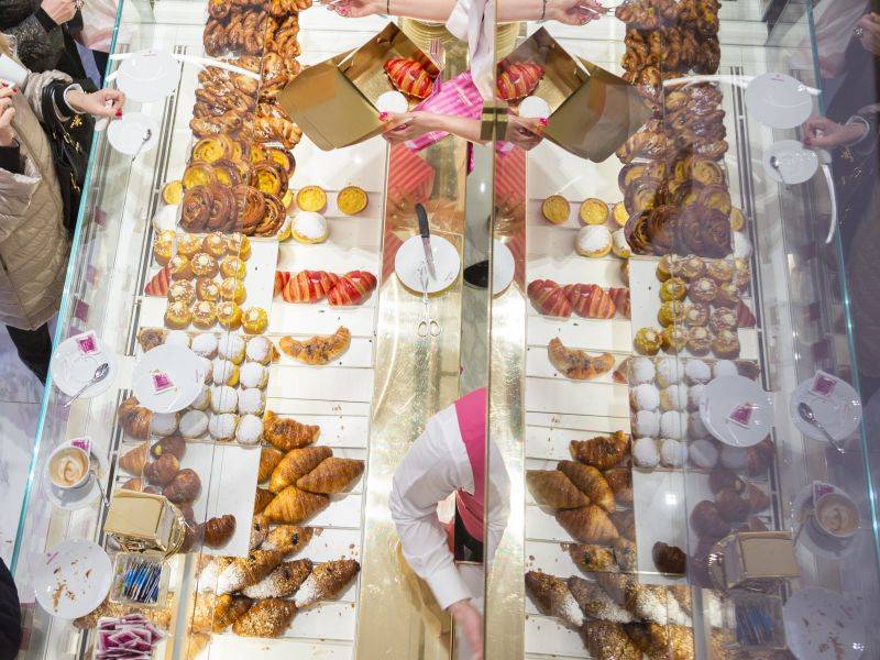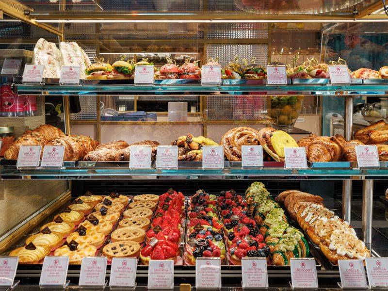 La colazione rappresenta il momento principale e più identificativo per la proposta Rinaldini. Pilastro di questo momento di consumo sono i piccoli lievitati, un'ampia collezione esclusiva frutto di un costante lavoro di innovazione portato avanti dal team di Ricerca&Sviluppo e dal team Marketing che monitora il mercato e i trend emergenti per rispondere al meglio alle esigenze dei consumatori. Una scelta strategica, che trova riscontro anche nelle dinamiche di mercato dove il primo pasto della giornata ha dimostrato un'elevata dose di resilienza, a fronte della contrazione dei consumi fuoricasa, con menu sempre più ampi e inclusivi. Non a caso, da Rinaldini Pastry, a fianco alla classica pasticceria, non mancano mai versioni vegane, referenze indulgenti e creative ma anche attente alle ultime tendenze salutistiche. Si aggiungono poi i prodotti da forno e i dessert monoporzione: dolci stratificati e dal gusto ricercato, simbolo dell’arte pasticcera. La proposta, nella sua unicità e creatività, consente un'esperienza d'acquisto la cui battuta media è comunque accessibile: dai 6 euro per la colazione, ai 16-18 euro per il pranzo e l'aperitivo passando per gli 8 dello snack pomeridiano.